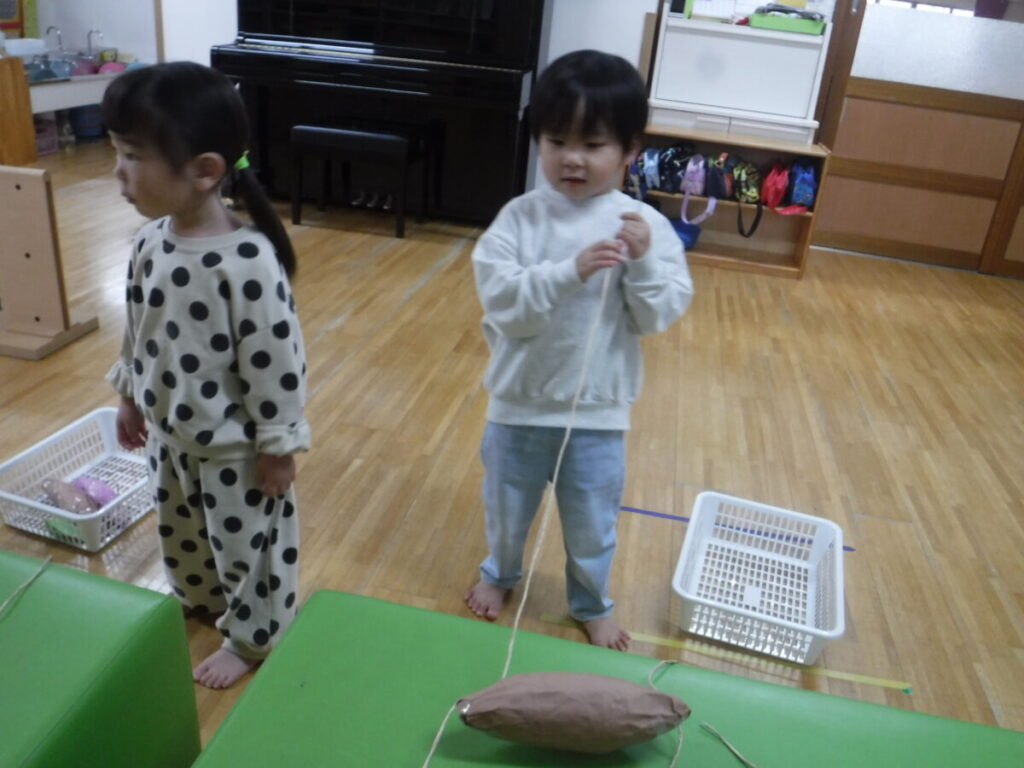 一人ひとり好きな場所を選んで「うんとこしょ!どっこいしょ!」と掛け声をしながら