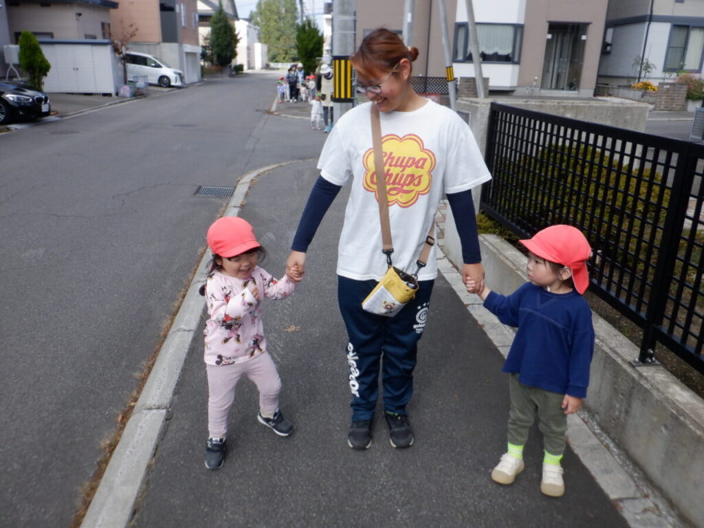 2歳児さんはもちろん。1歳児は順番に保育士と手を繋いで一生懸命歩きます✨