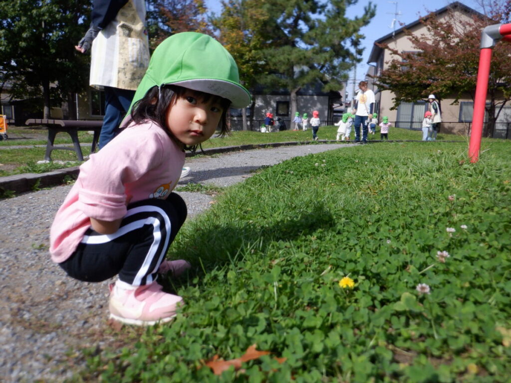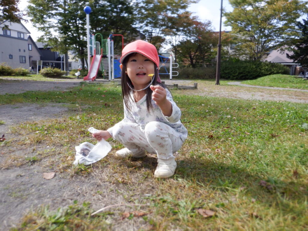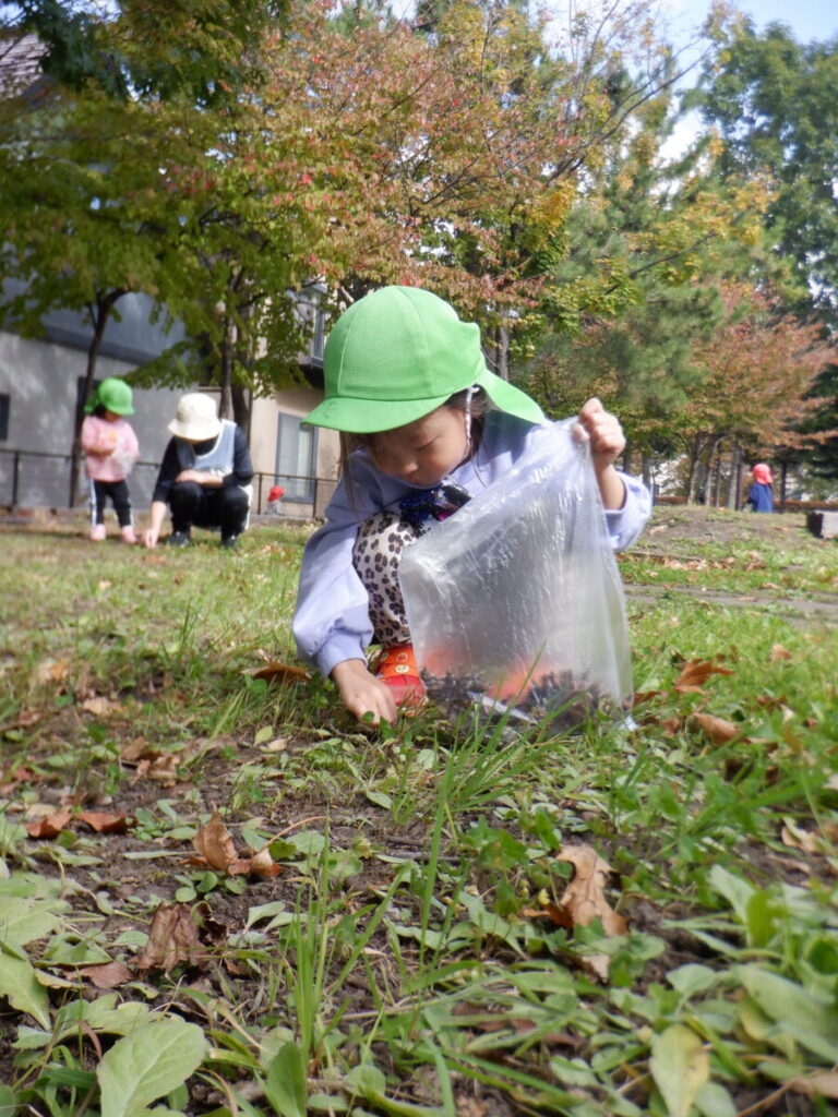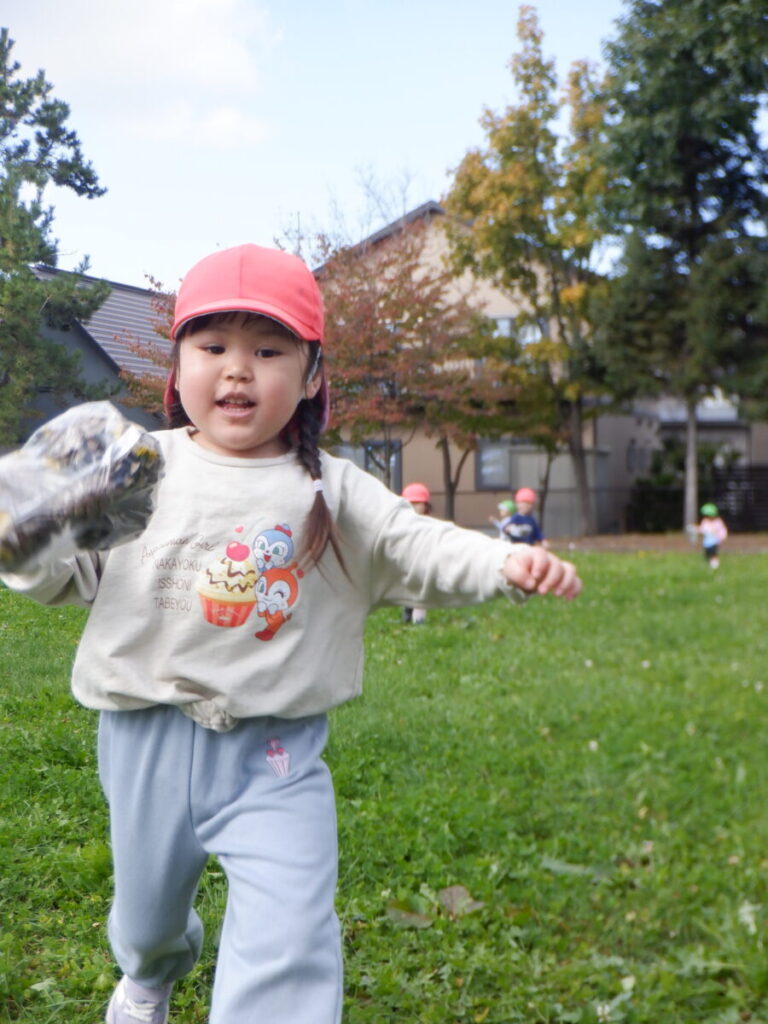 公園ではまつぼっくりや、どんぐり、大きな大きな落ち葉を拾って探索を行っています。
