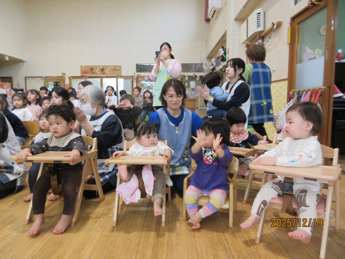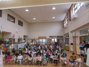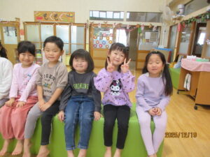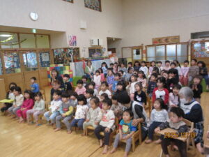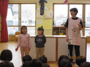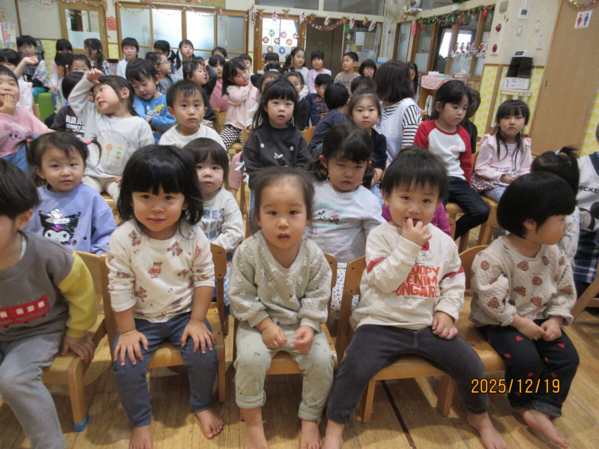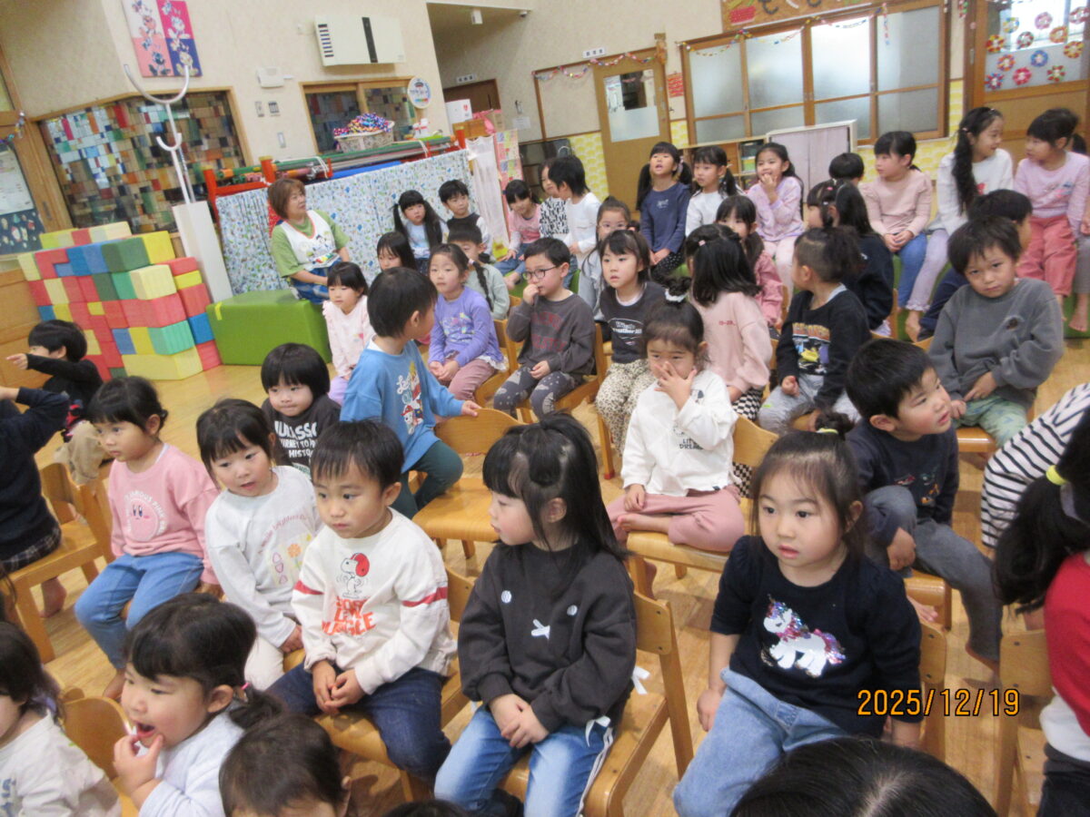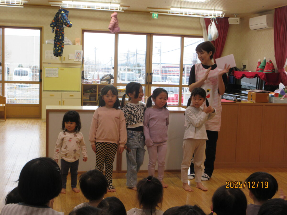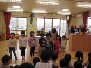お名前を呼ばれて前にでて、みんなから「お誕生日おめでとう!!」とお祝いしてもらいました。