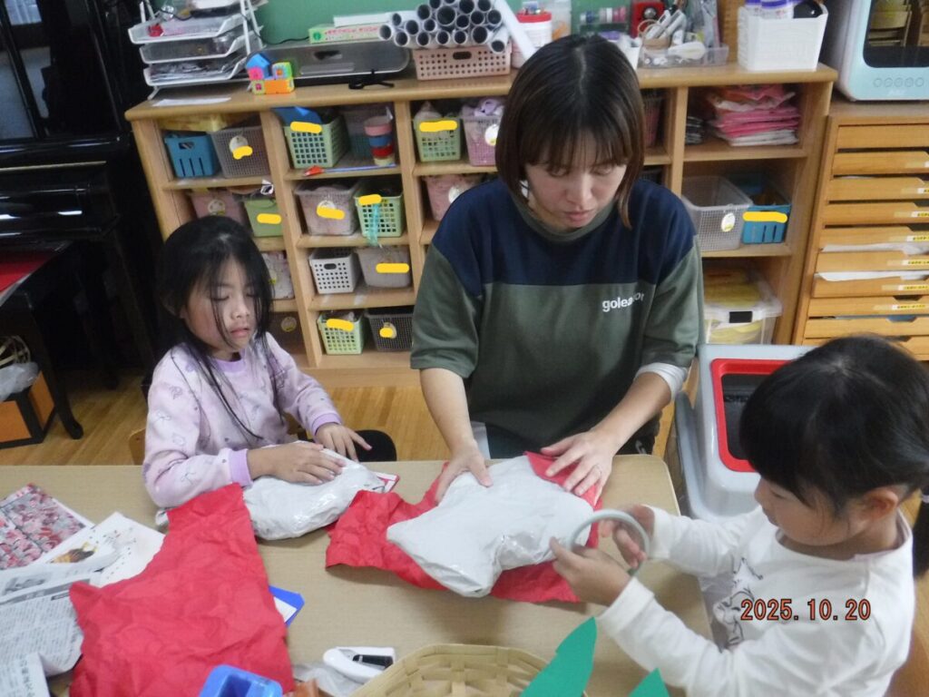 子ども達のアイディアやイメージを大事に作り上げていきます。