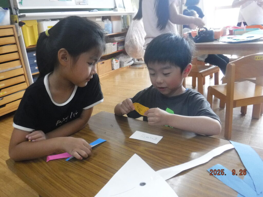 お友だちと相談しながら作っていました。