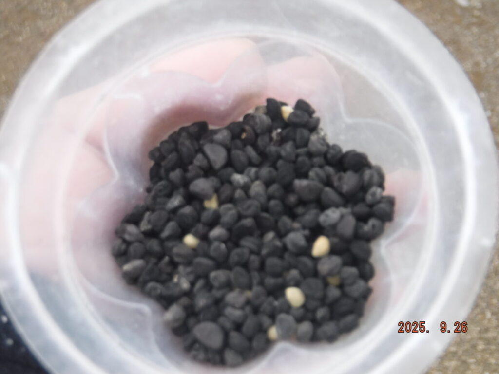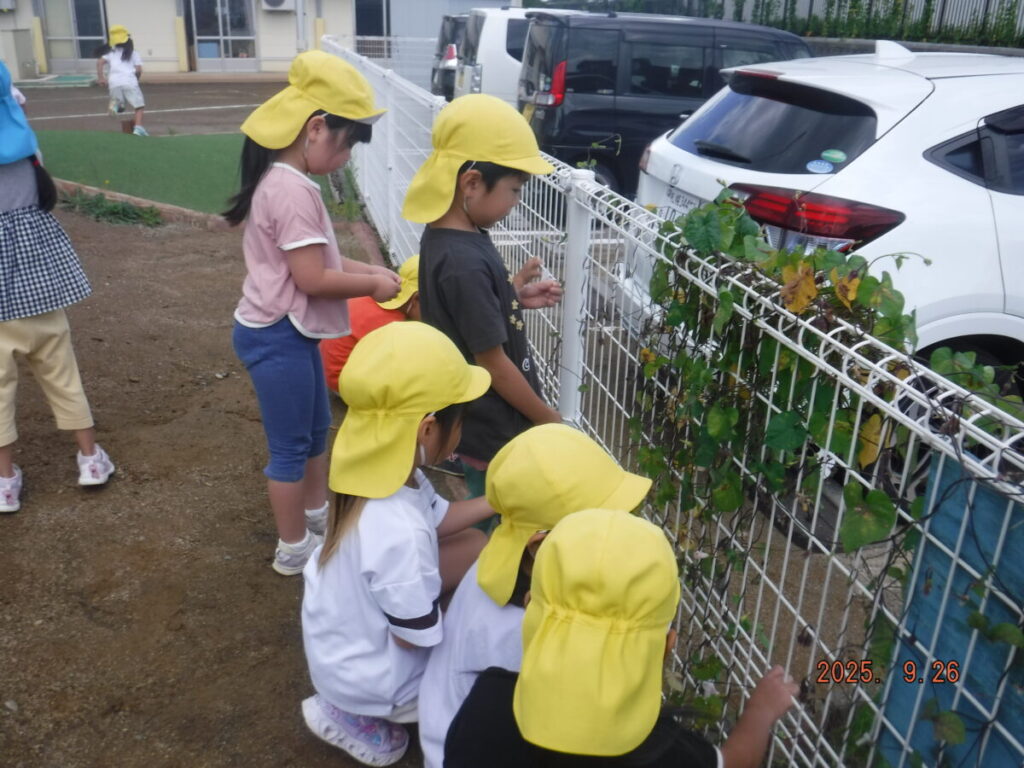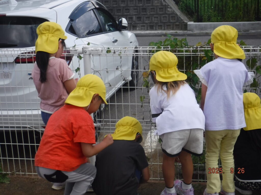 アサガオの種を皆で取っています。