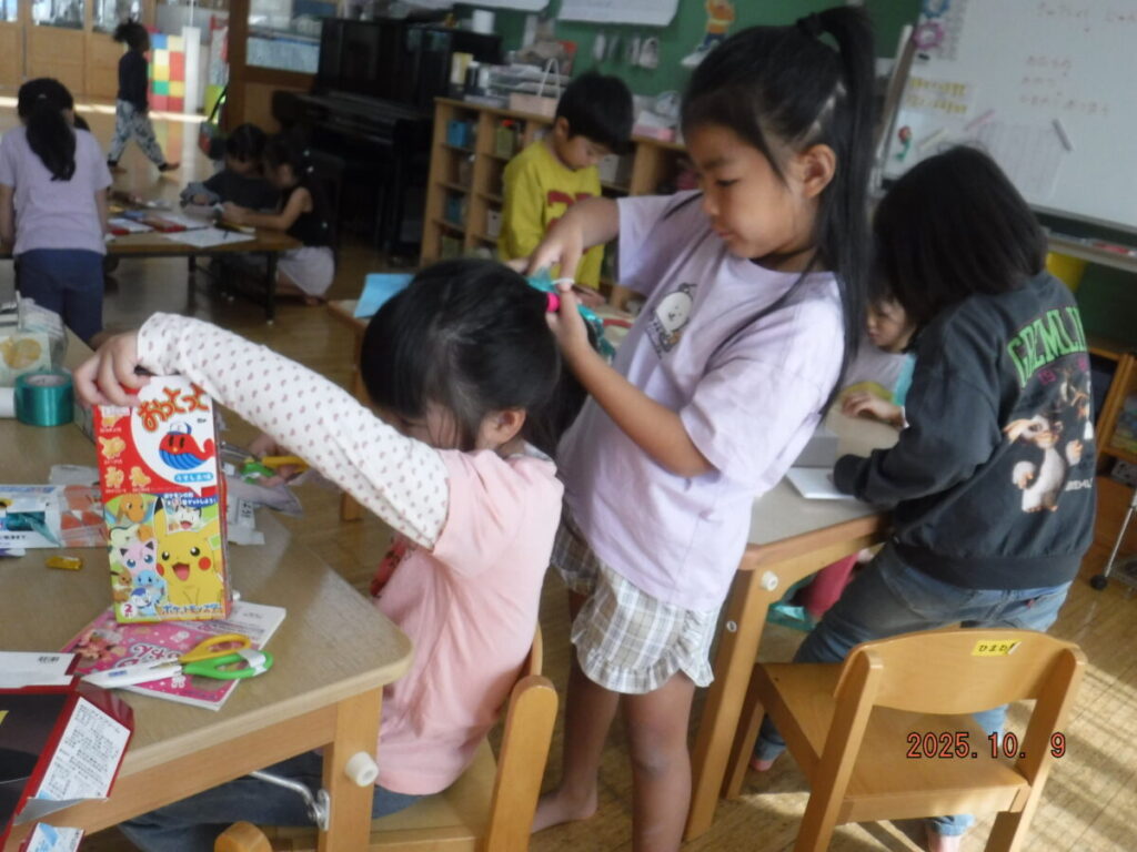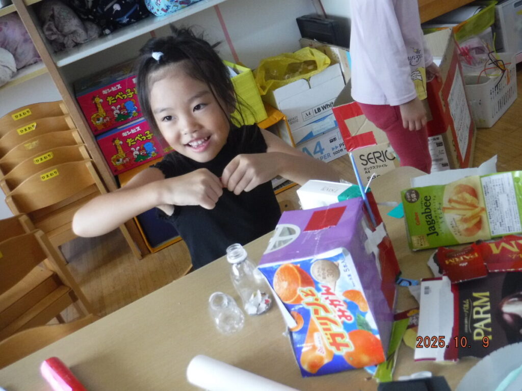 廃材などを使って、自分で考えて作ったり、
