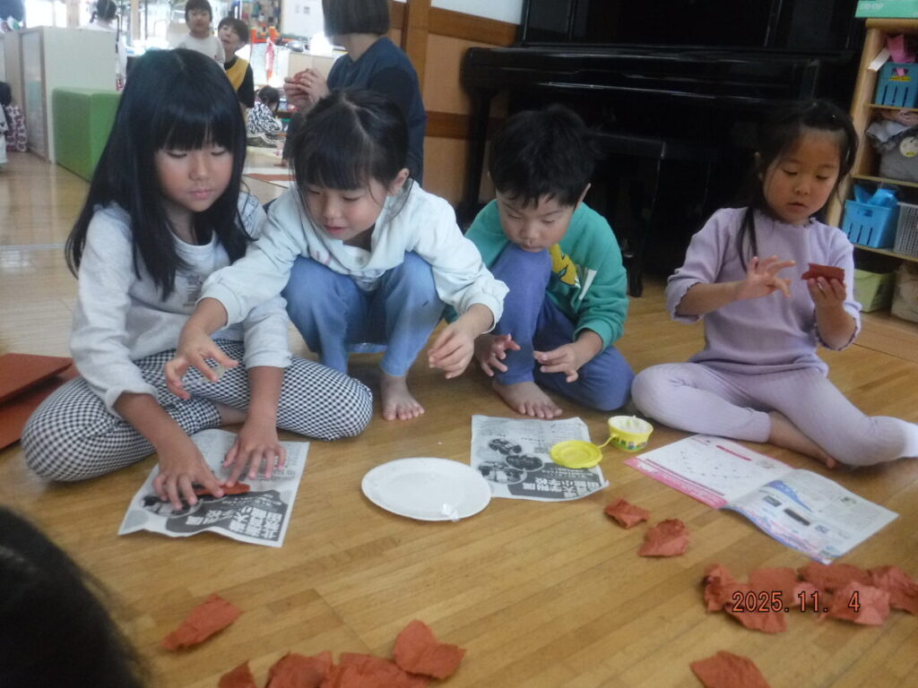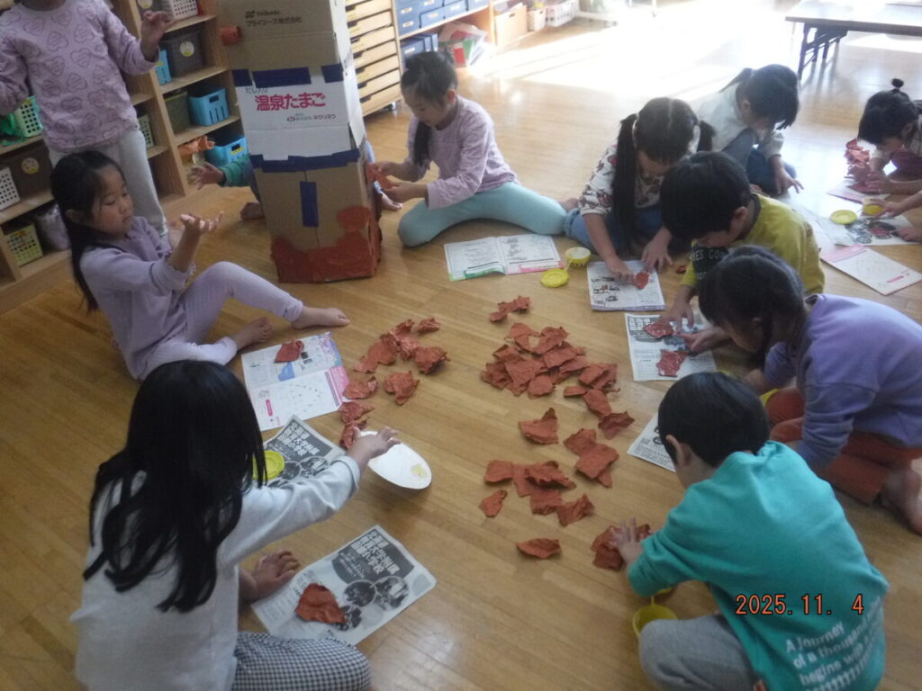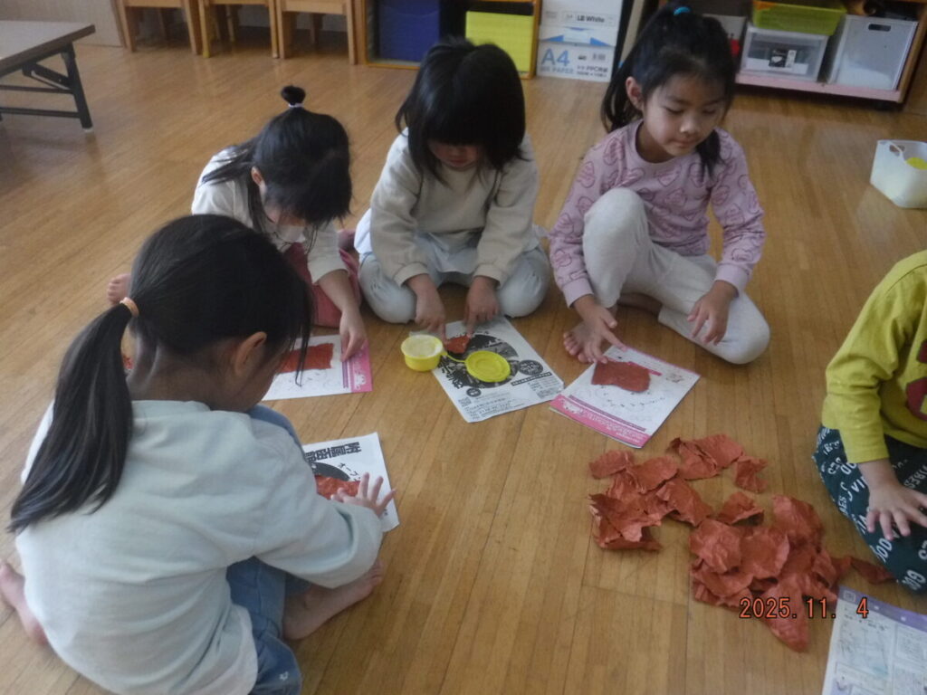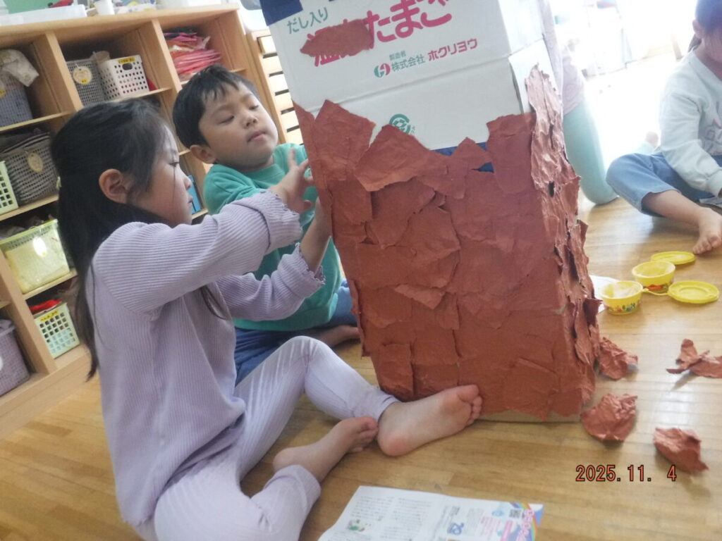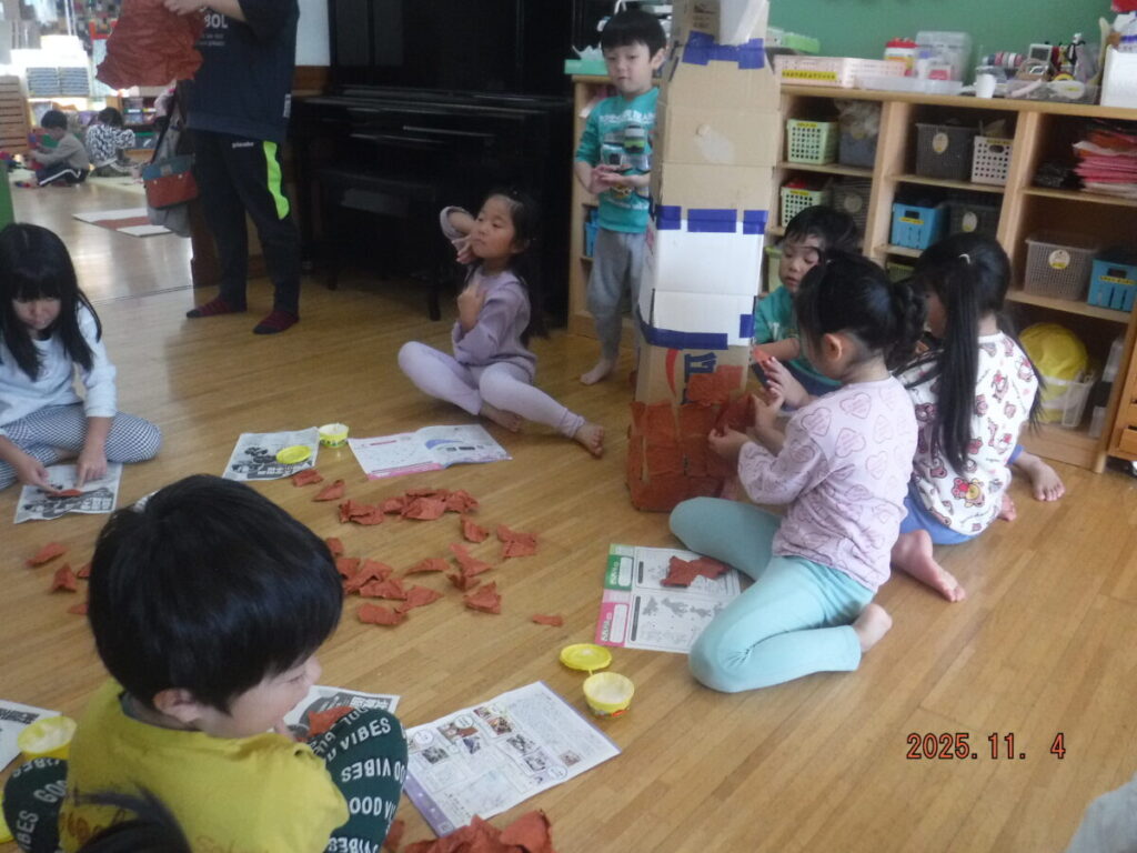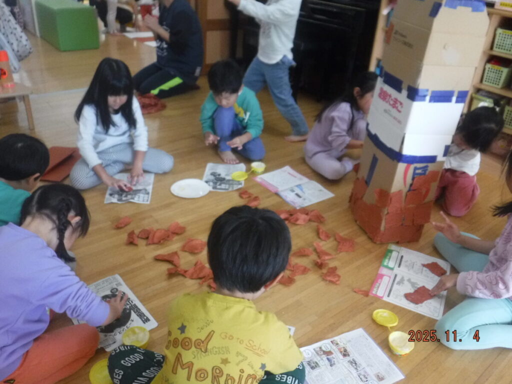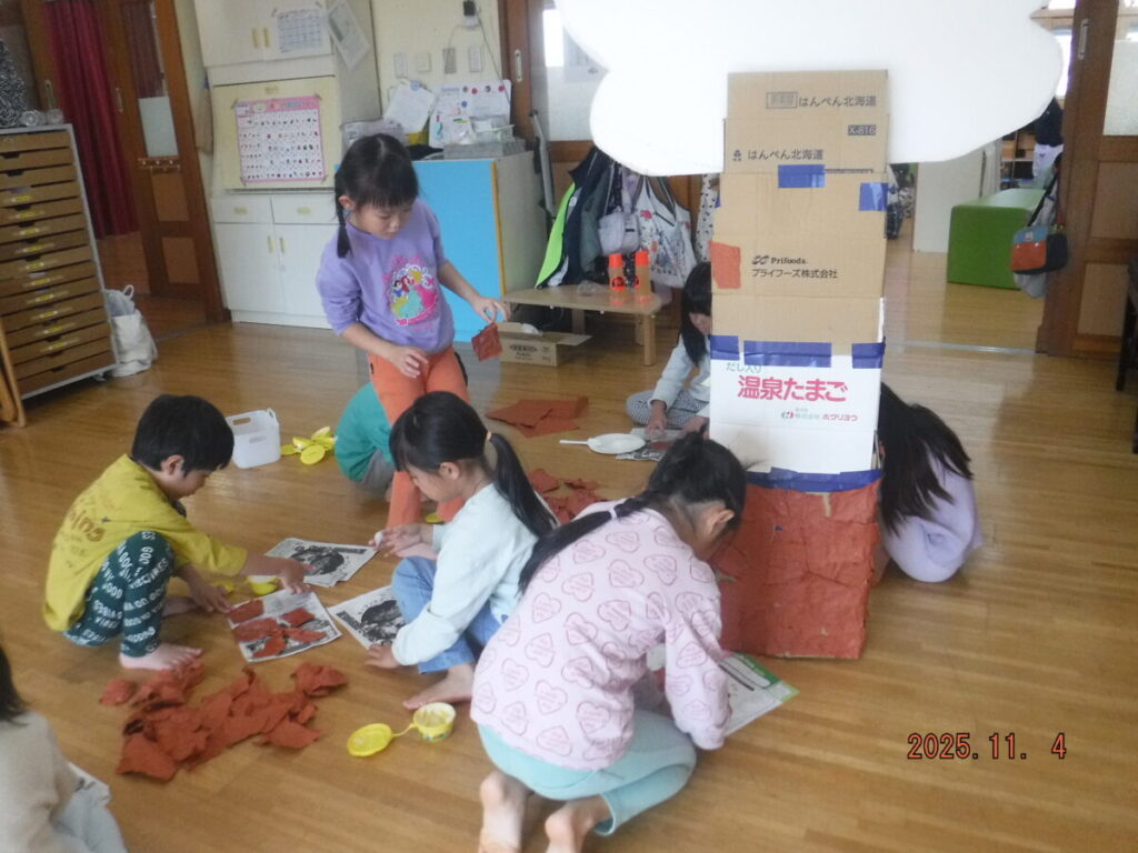 劇に使う小道具作りに、協力しながら作り上げているひまわりさん🌻