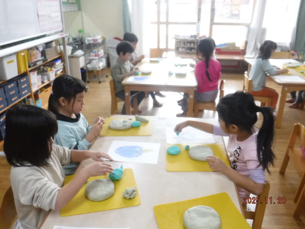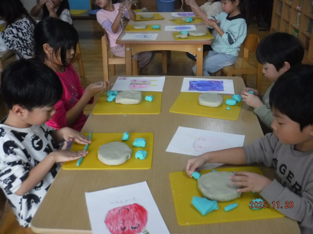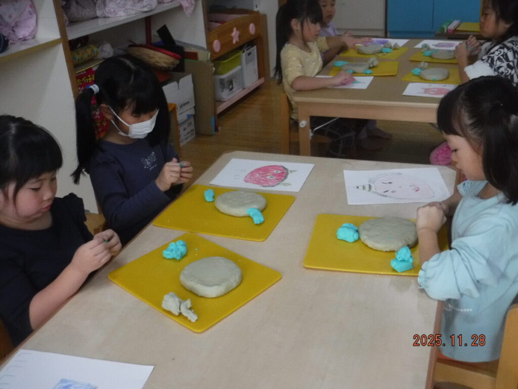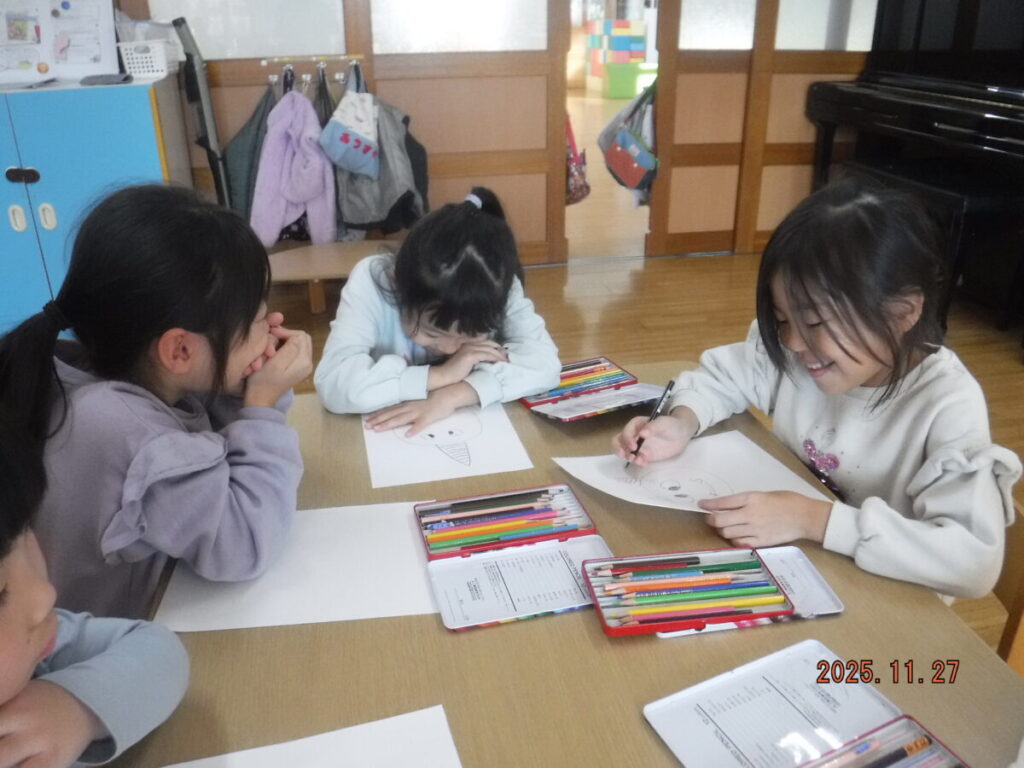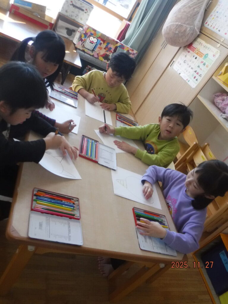 前日に自分たちが作りたい鬼のお面の下書きをしました。