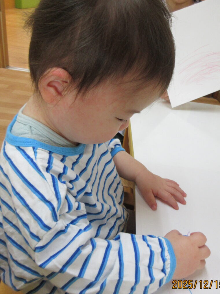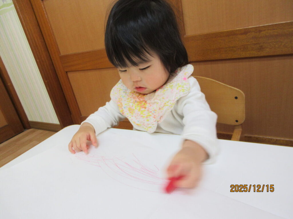 とんとん画用紙にクレヨンを打ち付けるのが、たのしかったようです。