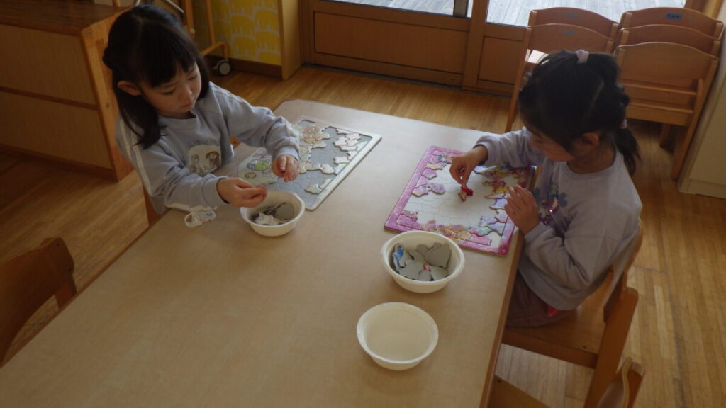 ブロックやパズルなど好きな遊びを見つけてじっくり遊んだり、