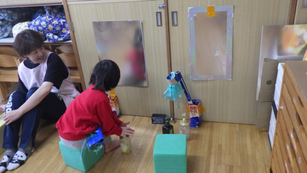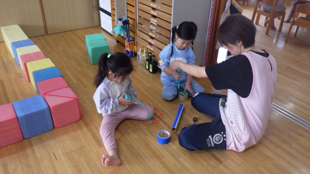 「お家にはお風呂があるから、お風呂を作りたいね」の一声で、「どうやって作ろう・・・」という話になりました。