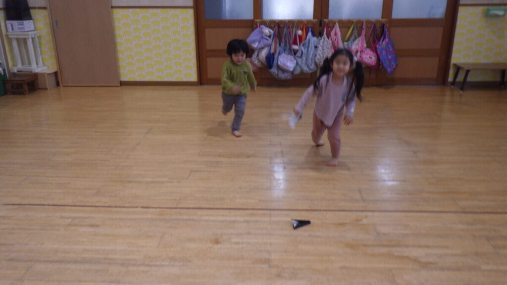 紙飛行機飛ばしも大好きで、よく飛ぶ紙飛行機を作れる紙飛行機名人が石川保育園にはいるんです✈