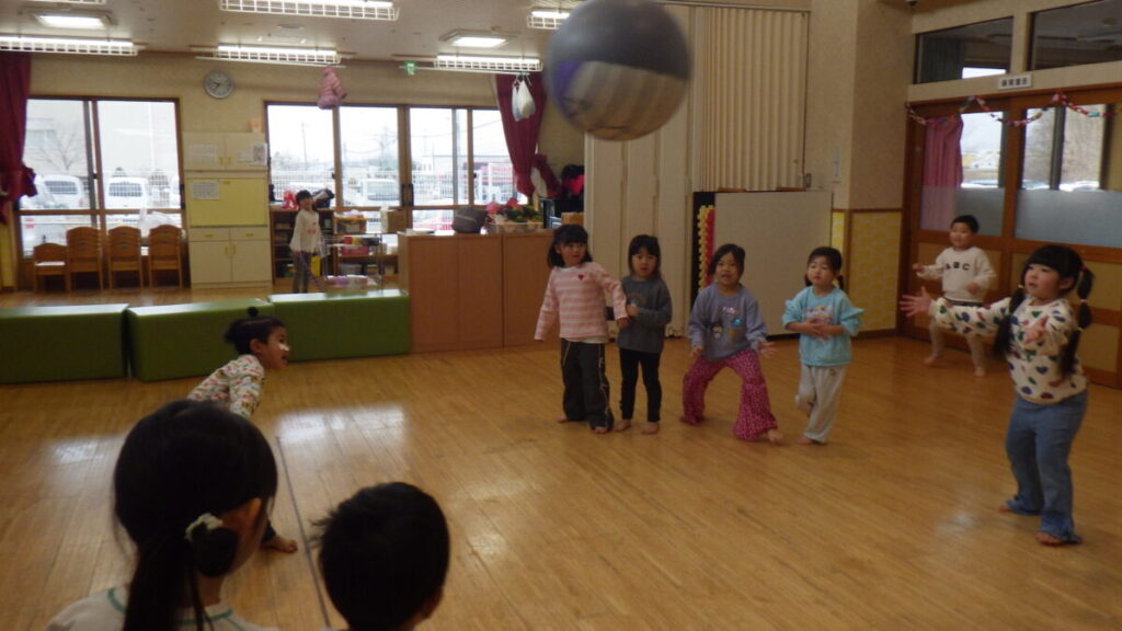 大盛り上がりのドッジボール大会🥎3.4.5歳児が2チームに分かれて戦っています!!