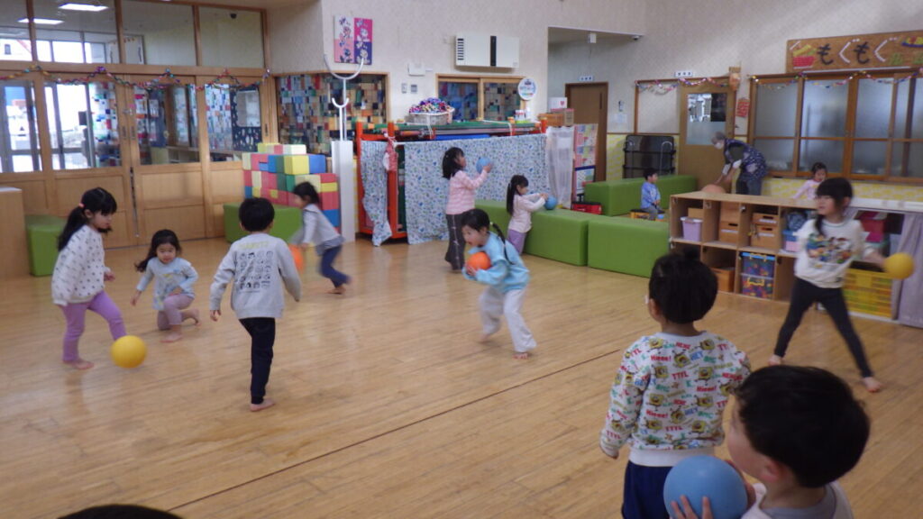 小さいボールを投げたり転がしたり、まりつきをして遊んだりもしています♬