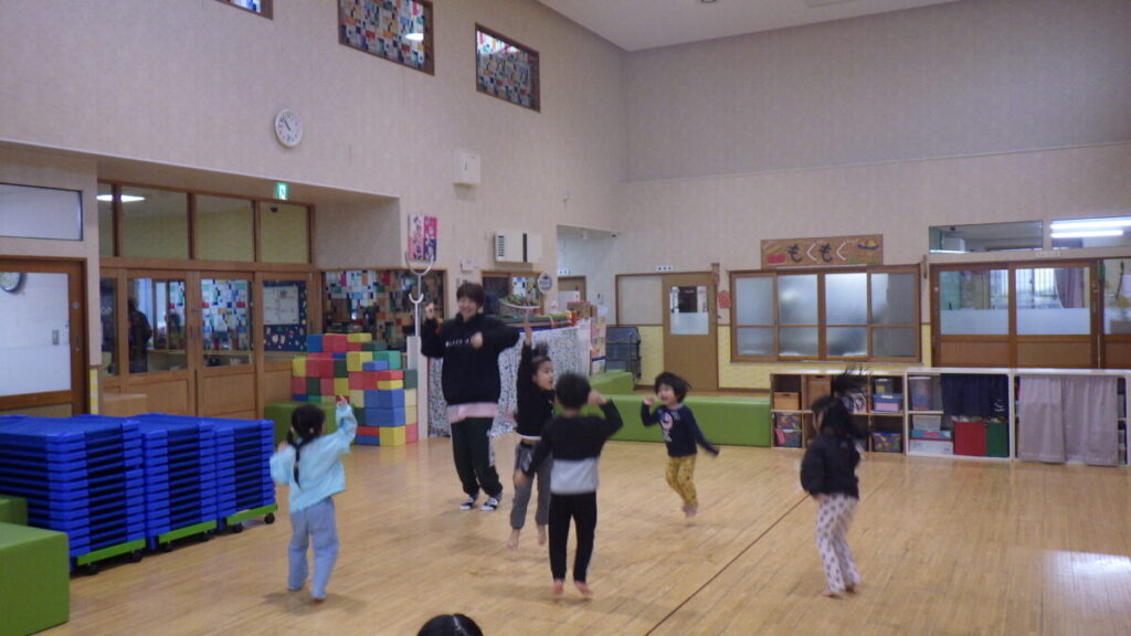 ホールでは、ドッチボールをしたり、ダンスを踊ったりと体を動かす遊びも楽しんでいます。