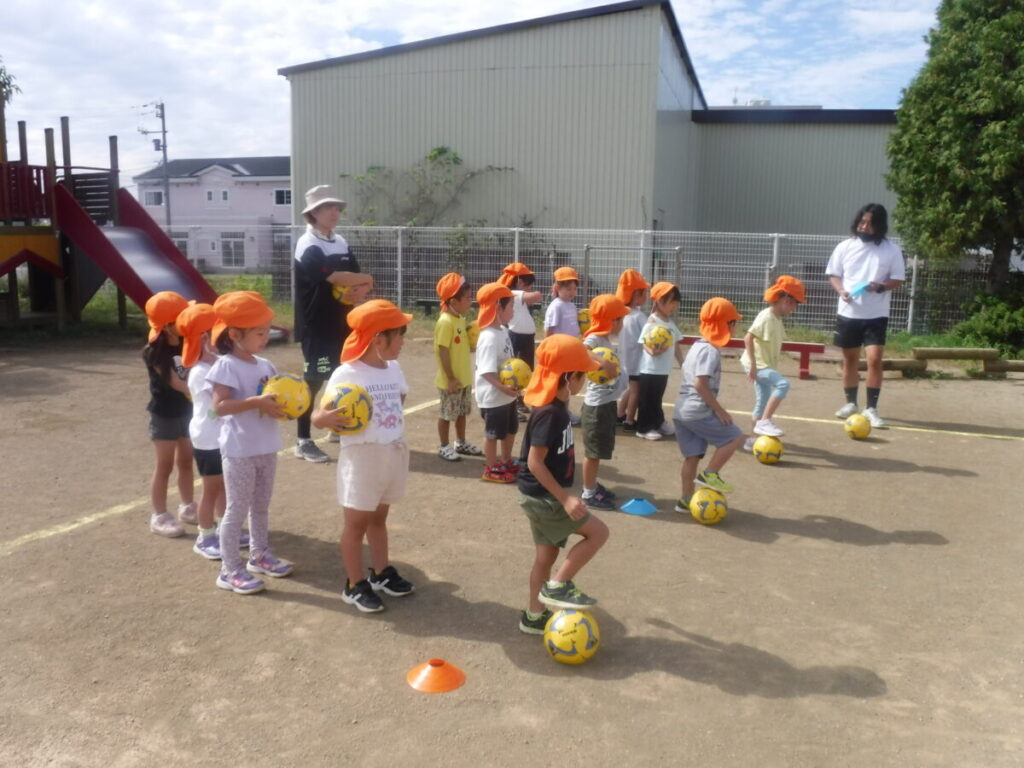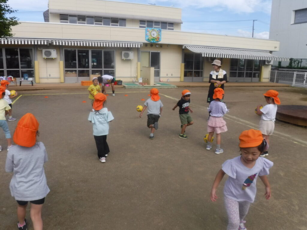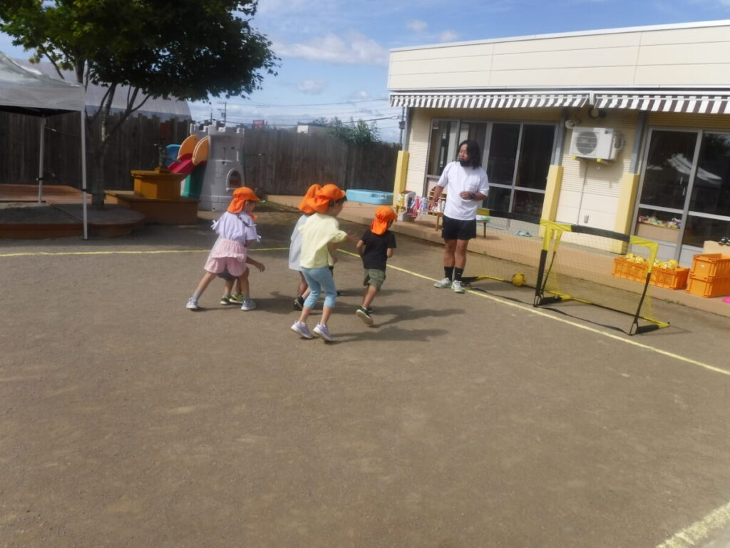 今日は、お天気が良かったので園庭でサッカーをしました。
